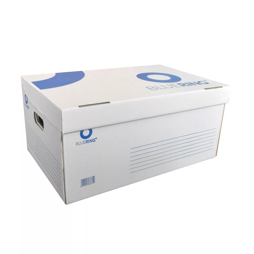 5db 10cm-es vagy 6db 8cm-es Bluering archíváló boxy tárolására alkalmas doboz, felfelé nyíló tetővel. Gyors és gazdaságos tárolást tesz lehetővé, lapra szerelten szállítható és könnyedén öszeállítható. Exkluzív kivitelezésű, erős kartonból készült. Irodájában vagy otthonában, költözésnél is megfelelő segítséget nyújt a tárolásban.