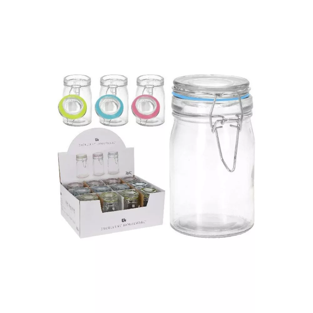 A 250 ml űrtartalmú vegyes színű üvegtároló vitathatatlan előnye, hogy gyakorlatilag bármilyen élelmiszerhez használható. Az üveg tároló szoros, hermetikusan záródó tetővel van ellátva, ezért szárított vagy tartósított élelmiszerek, befőttek, lekvárok stb. tárolására alkalmas.