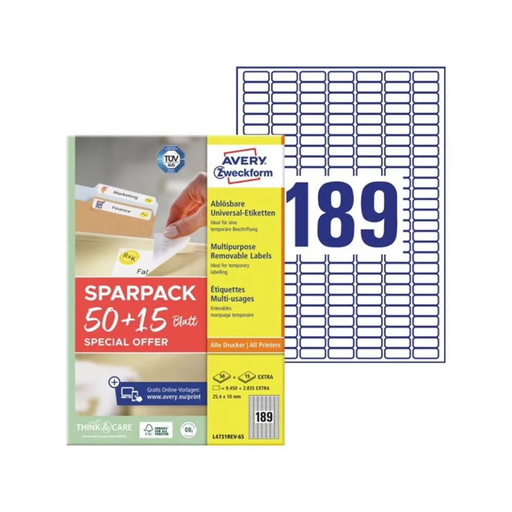 Doboz tartalma: 12285 címke - 65 lap/doboz (189 címke/ lap)