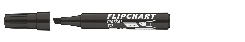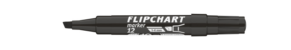 Flipchart tömbök és egyéb papírívek feliratozására alkalmas, vízbázisú festékkel töltött marker. A festék a papír másik oldalára nem üt át. Megnövelt élettartam a nagyobb méretű testnek köszönhetően. Vágott csúccsal. Vonalvastagság: 1-4 mm.Katalóguskód: 24689