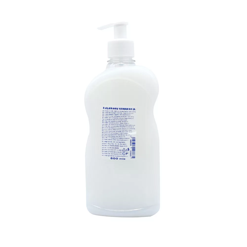 Gyöngyházfényű, fehér, kézkímélő folyékony szappan.