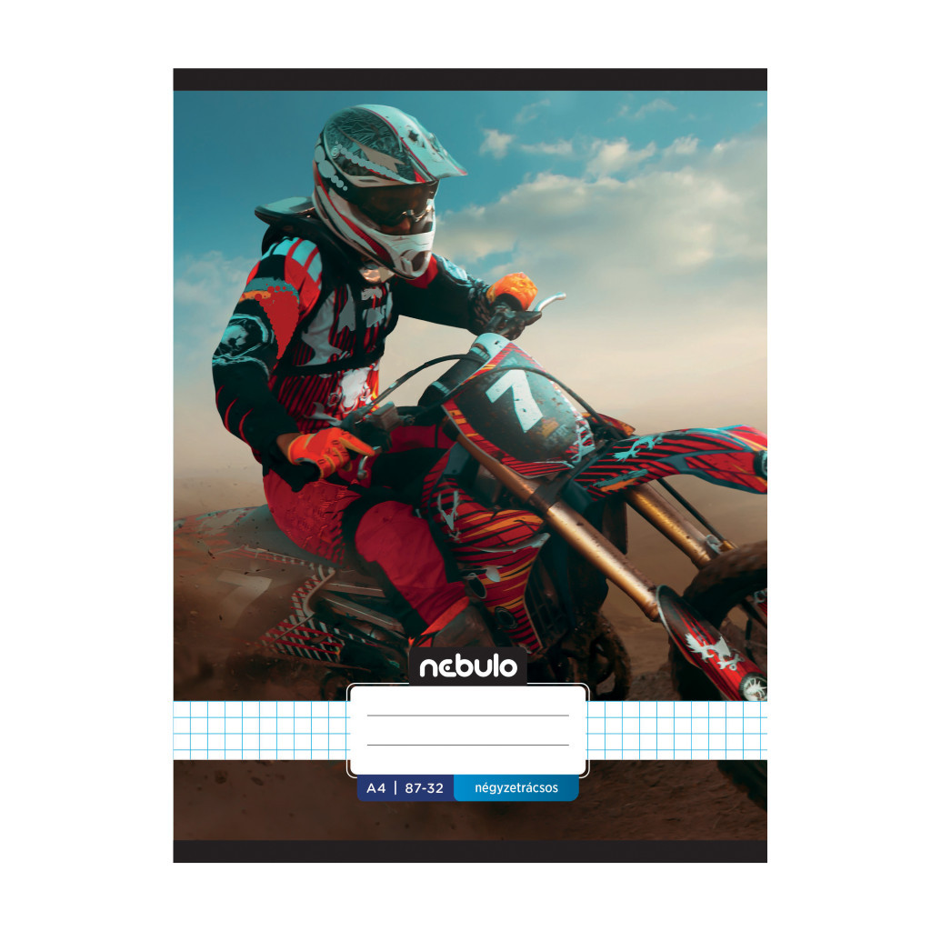 A/4-es tűzött iskolai négyzetrácsos füzet, 32 lapos (87-32). 12 db füzet (12 különböző minta) van egy csomagban. 70 g-os füzetlapok és 200 g-os műnyomó borító fényes fóliával.