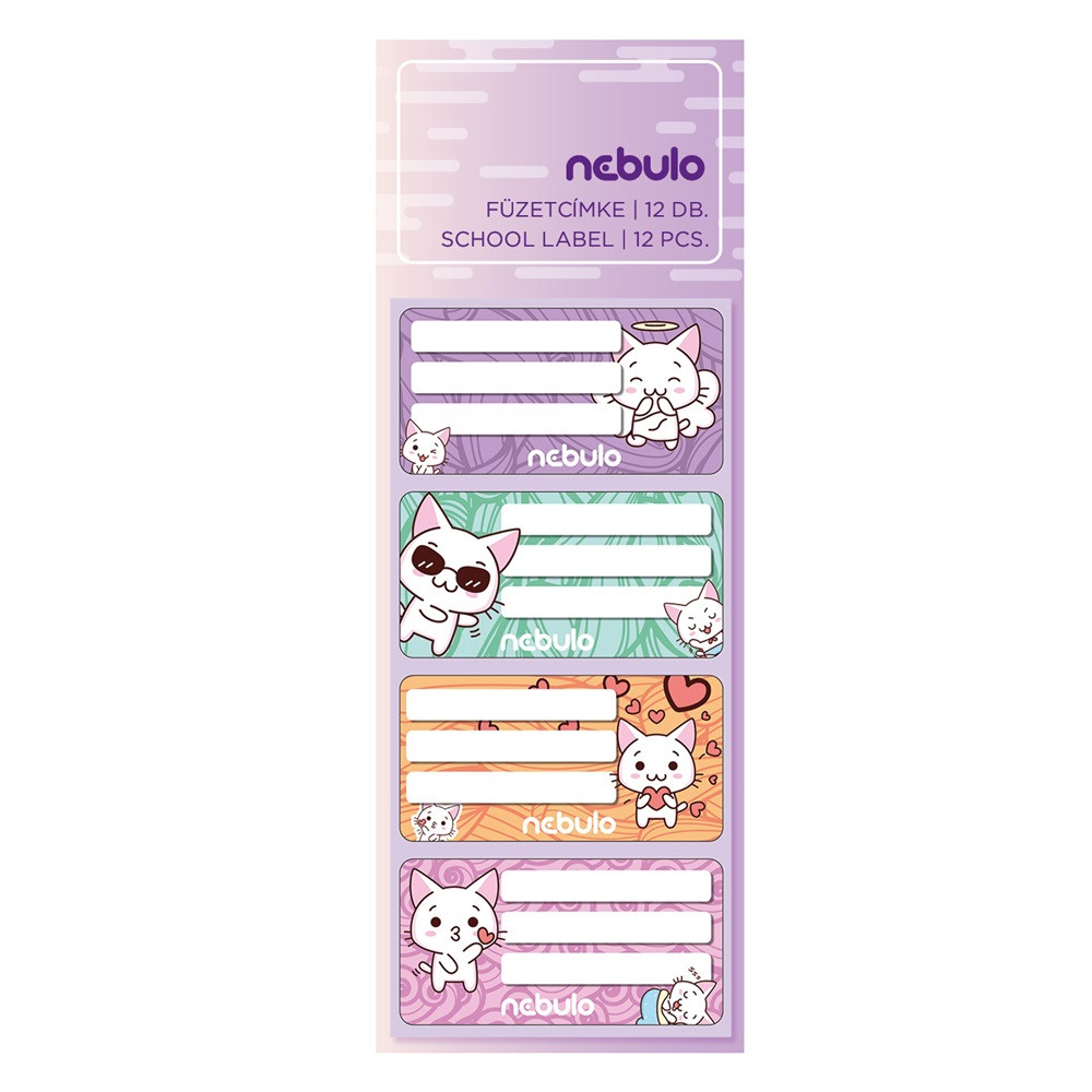 Füzetcímke 12db-os, Cica, vegyes minták, Nebulo