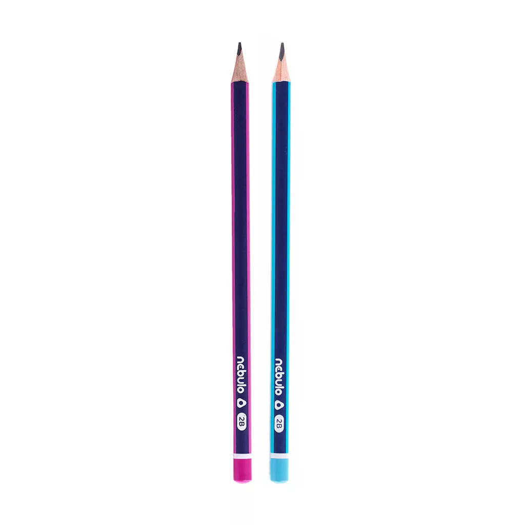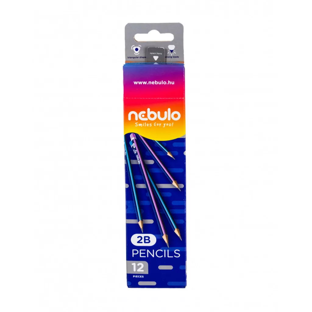 Kiváló minőségű grafitceruza, festett fatesttel, erős heggyel. Ergonomikus, háromszögletű forma. 6 lila és 6 kék csíkos ceruza a dobozban, vonalkóddal ellátva. Keménység: 2B Katalóguskód: 32251