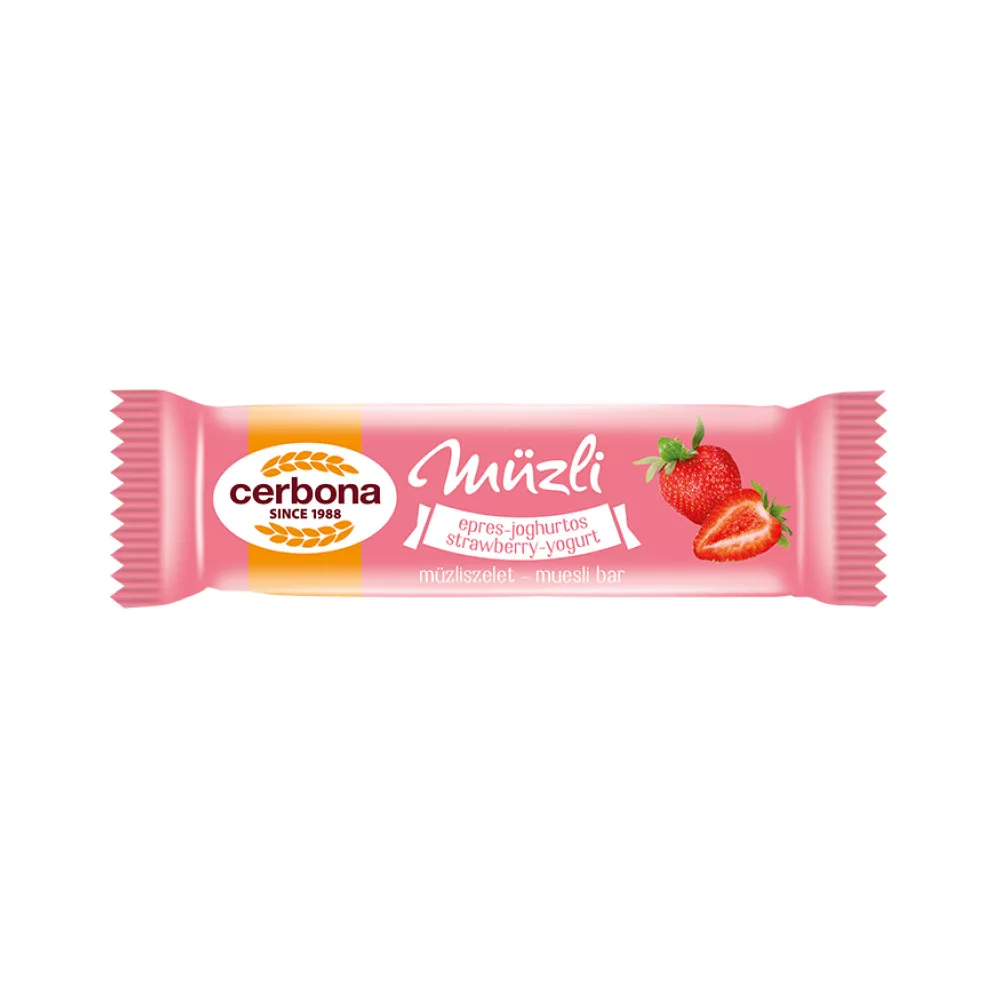 A Cerbona epres-joghurtos müzliszelet értékes tápanyag összetételű, élelmirostban gazdag, ezáltal jól beilleszthető az egészséges táplálkozásba. A epres-joghurtos müzliszeletet az eper és málna darabkák, epres bevonó, joghurtpor, valamint a gabonapelyhek és a lapított zabpehely teszik ellenállhatatlanul finommá. Könnyen magaddal viheted és bárhol fogyaszthatod müzliszeleteinket. Hiteles tájékoztatás: Elkötelezettek vagyunk termékeink biztonságának garantálásáért, nyomon követjük a termékbiztonsággal kapcsolatos valamennyi európai uniós és hazai szabályozást és biztosítjuk termékeink azoknak történő megfelelését. Az EU 2023/988-as számú Általános Termékbiztonsági Rendeletét (GPSR) is alkalmazzuk, így ha a termékeink biztonságát illetően fogyasztóként kérdése, észrevétele van, vagy esetleg balesetről van tudomása, kérjük, írja meg nekünk.