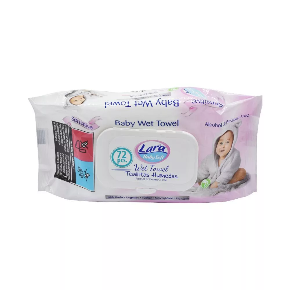 Lara Sensitive nedves törlőkendő alkohol és parabénmentes.