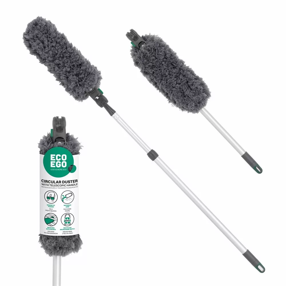 A Duster ECO EGO egy praktikus eszköz, amelynek a hegye bolyhos mikroszálas anyagból készül. Szárazon és nedvesen egyaránt jól működik, bútorok, falak, padlók, növényi levelek és üvegfelületek tisztítására is. A mikroszálas utántöltő kényelmesen mosható mosógépben is.