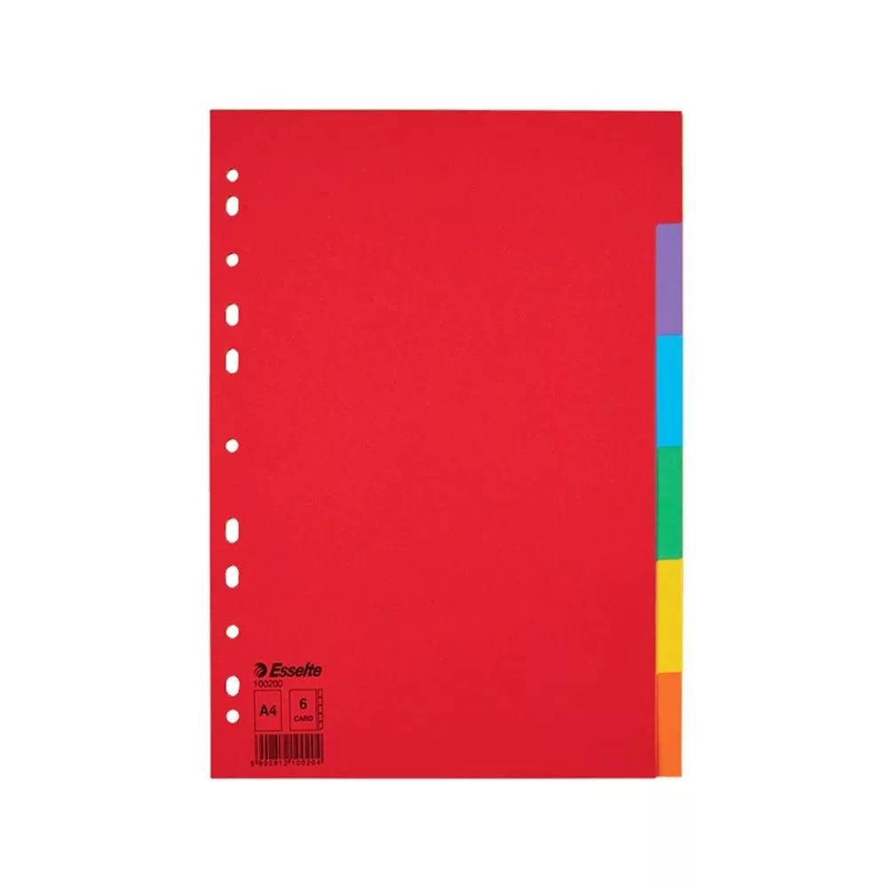 Tartós elválasztólap élénk színkombinációkban. Újrahasznosított karton alapanyag. 6 színes fül a könnyű rendszerezéshez Hagyományos, 11-lyukú lefűzőrész A4 formátum Erős, 160 g-os karton alapanyag Blue Angel minősített, újrahasznosított karton alapanyag Katalóguskód: 35867